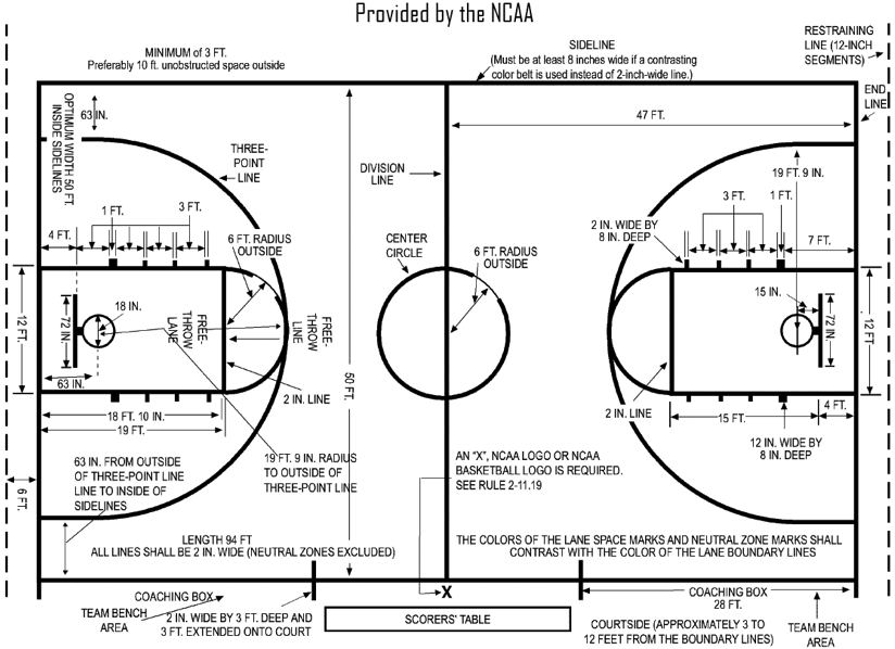 Basketball, the game itself, requires extensive knowledge of geography and understanding of spatial relationships. Coaches work with players to improve players spatial knowledge of the court; know where the ball is, know where your teammates are, know where the other team’s players are, know where you are in relation to the sidelines/endlines/timeline, know where you are in relation to the basket. Here is a map, in case you have forgotten: