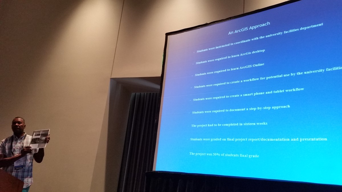 North Carolina Agricultural and Technical State University (NC A&T) has roughly 8,900 students and covers 713 acres; a little more than a square mile. Dr. Tony Graham engages his students in projects to help their campus improve facilities management as part of normal coursework. Each semester, Dr. Graham allows his students to choose a project, a project which will either fill in gaps in the infrastructure database, or augment, improve data. The results of his students work is then merged with the university’s management scheme. The students are not engaged in pointless academic exercises but working on solving real-world problems and gaining real-world experience directly translatable into employment.